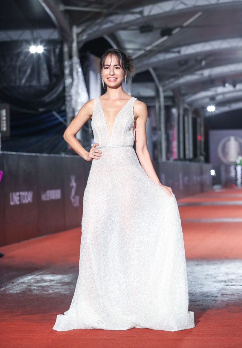 21日盛裝現身紅毯,一襲絕美身V長禮服,讓眾人驚艷不已